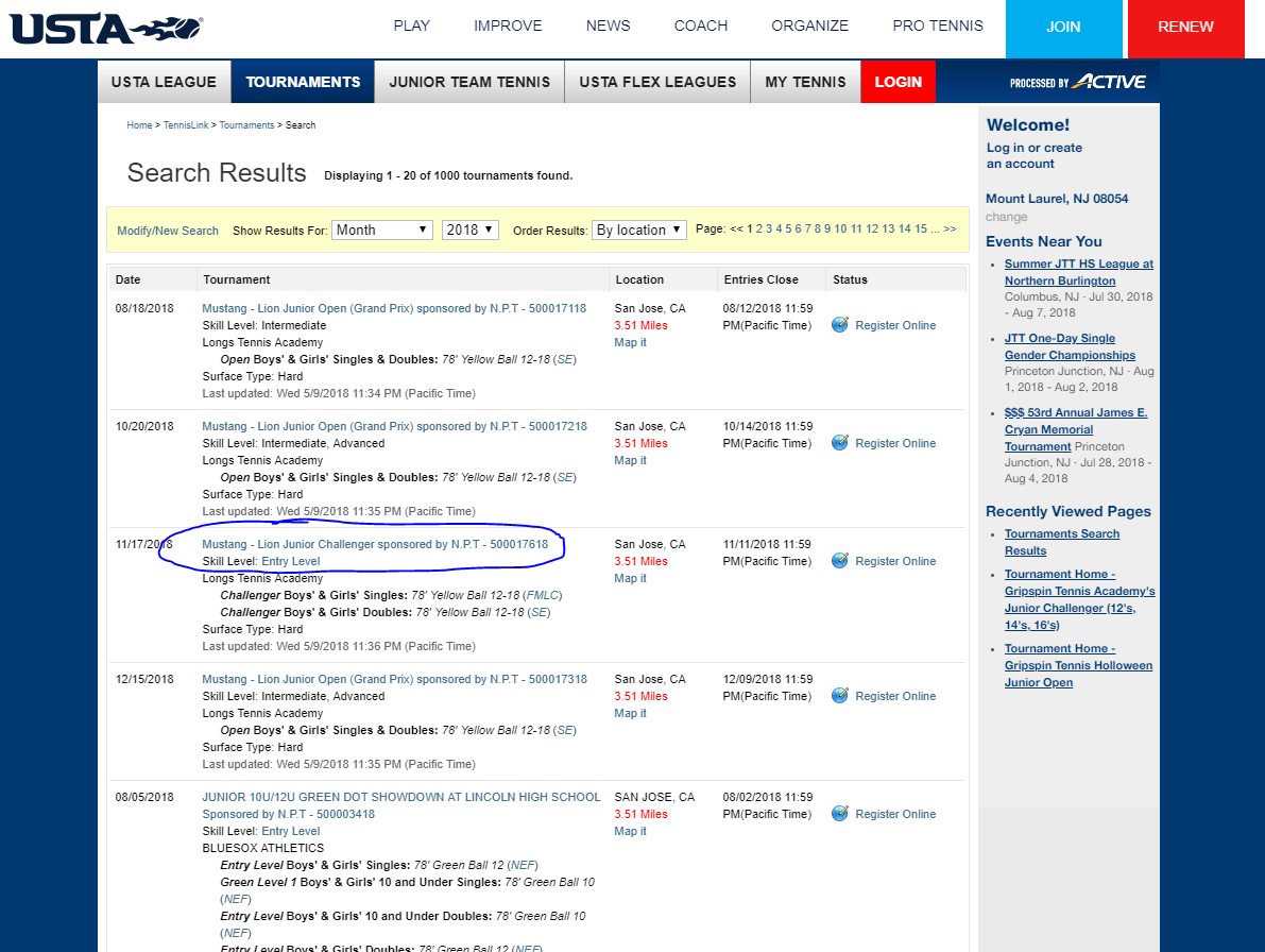 Search For Tournament Level And Choose A Tournament