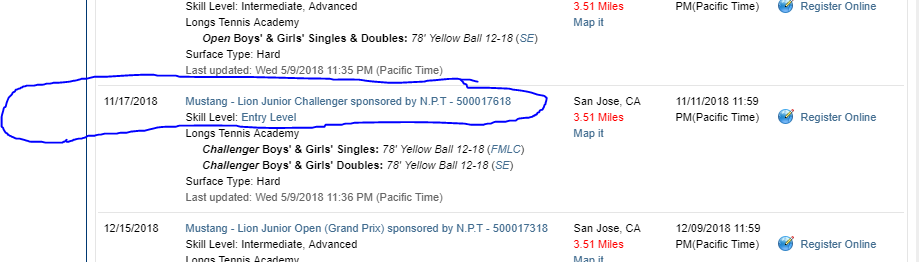Be sure and check for the location. Some tournaments have multiple locations. You can always call the director or email them for more information. Most Tournaments will have the locations posted in the "Important Info" section.