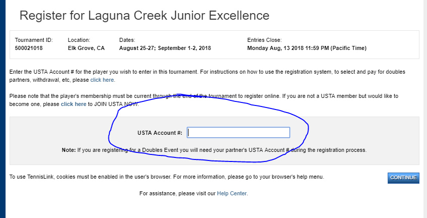 Enter Your Child's USTA Number