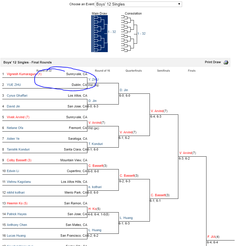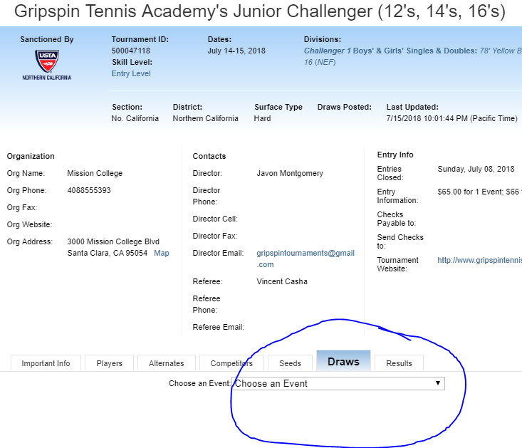 Select Draw Tab and Choose The Event That Your Child Is Registered For (Ex. Boys 12s)